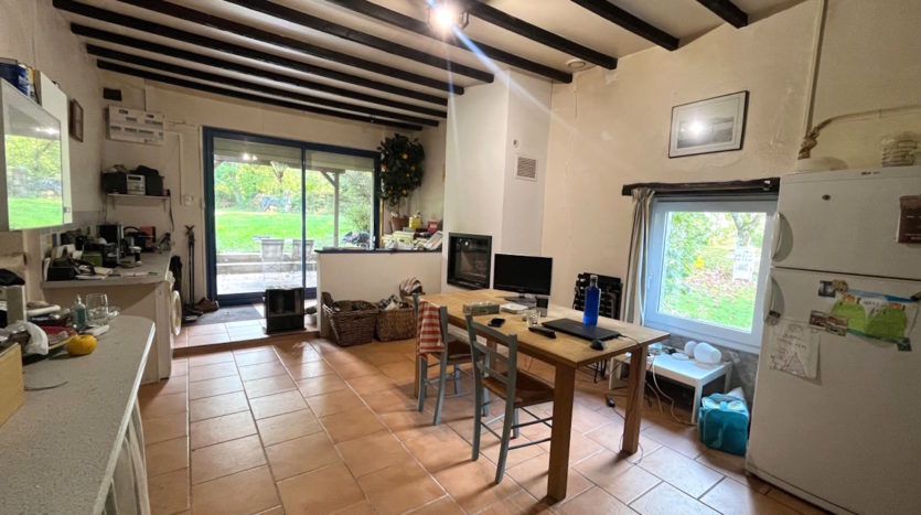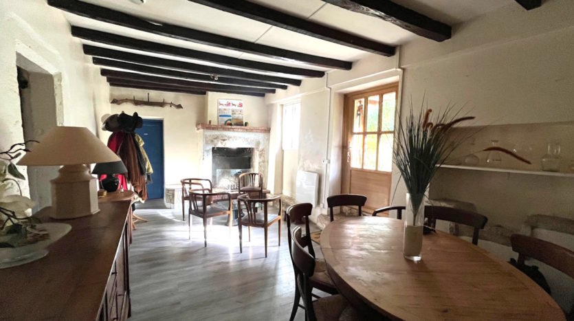 Maison d’habitation en pierre de plain pieds, construite en 1860, d’environ 120m² et comprenant : Grande cuisine dinatoire, séjour, salon, deux chambres, salle de bains, WC, ainsi que des dégagements et une grange fermée d’environ 45m² avec mezzanine.