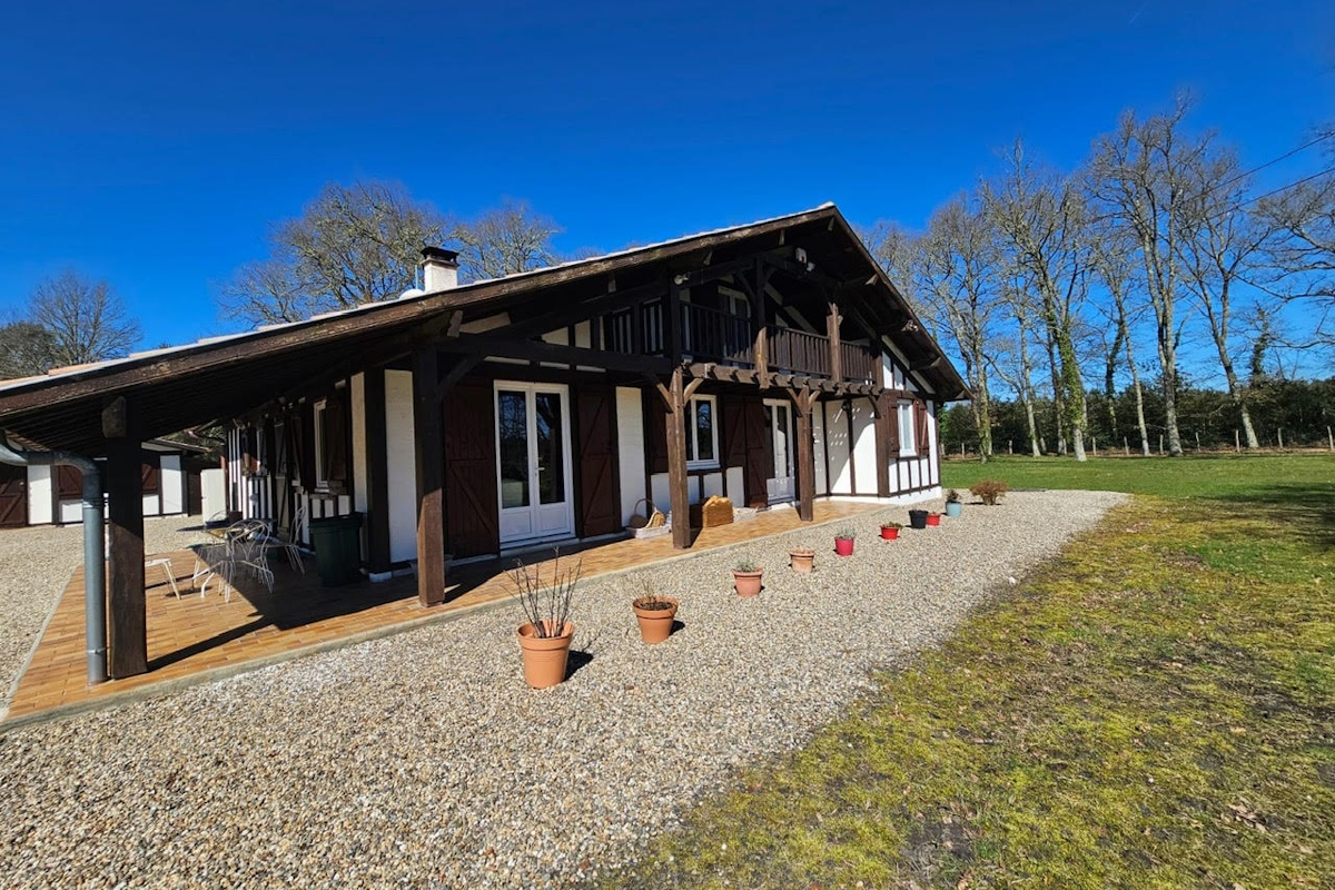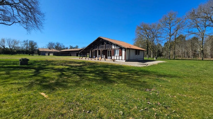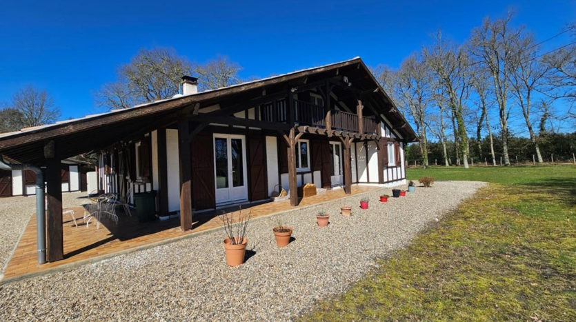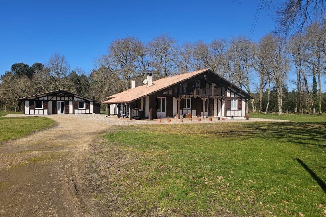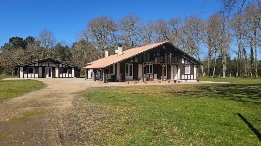 Rare sur ce secteur. Située dans un village landais à la limite du lot et Garonne entre Lubbon et Casteljaloux, jolie propriété qui se compose d’une maison principale de 160m² : grand séjour avec son insert, 5 chambres, 3 salles de bains, une spacieuse cuisine, une buanderie et une chaufferie. Une deuxième maison de 50m² avec son bureau, deux chambres, une salle de bain et une cuisine.